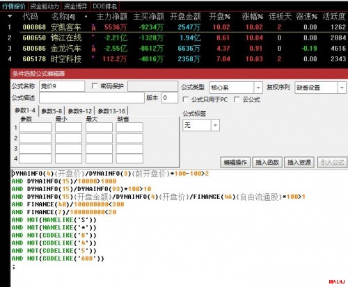 通达信集合竞价函数大全和组合条件公式预警
